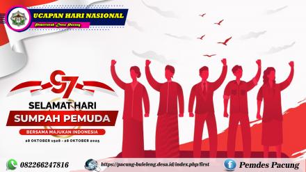 Kami segenap Pemerintah Desa Pacung mengucapkan Selamat Hari Sumpah Pemuda ke 97, Semoga semangat persatuan terus tumbuh di hati pemuda Indonesia.